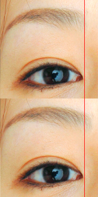 眉頭2〜3mmのところは色を入れず自毛だけにする。これだけ。